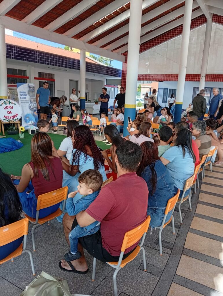 Com sensibilidade e didática, a contadora de histórias conduziu o público a compreender que cada pessoa possui seu próprio brilho e sua própria cor, reforçando a ideia de que, embora sejamos diferentes em nossas características e formas de ser, somos todos iguais no direito de receber amor, acolhimento e respeito.