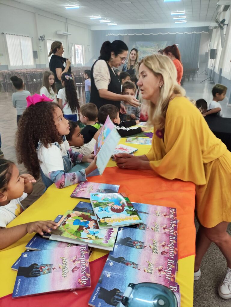 Entre as atrações, destacou-se o bate-papo com a escritora Zeni Maria de Oliveira, realizado às 8h30 e às 14h no Coreto Municipal, reunindo alunos e comunidade. A autora compartilhou reflexões sobre seu processo criativo e a importância da literatura no desenvolvimento humano.